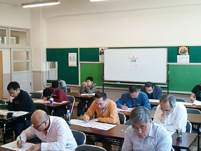 本日、四谷ひろばで開催されている 王位戦 2013 にて、中上級向けの「第3回バックギャモン検定」を実施しました。